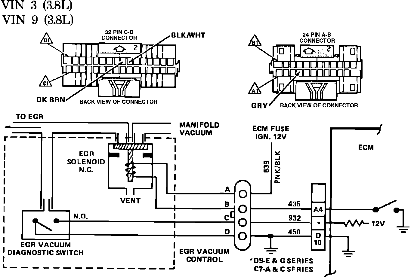 Fig. 002 - WIRING DIAGRAM for Chart C-7 EGR Check. VIN 3, VIN 9:
