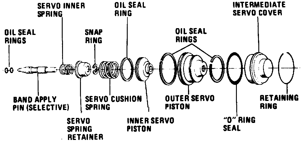 4. Install intermediate servo assembly. Tap lightly with plastic hammer if necessary. Make sure tapered end of band apply-pin is properly located against the band apply lug.