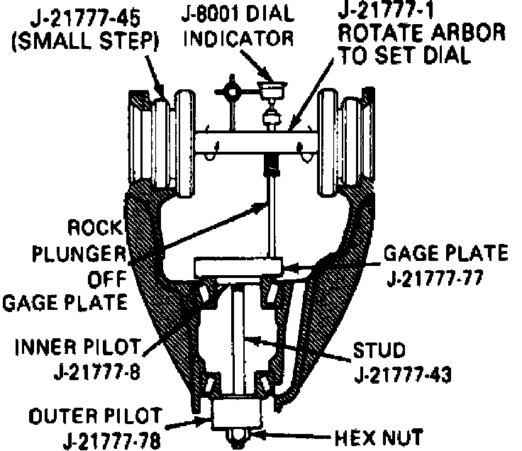 a. Install pilot J-21777-8 on short threaded end of stud, Fig. 6, until seated, then install gauge plate and tighten plate against pilot.