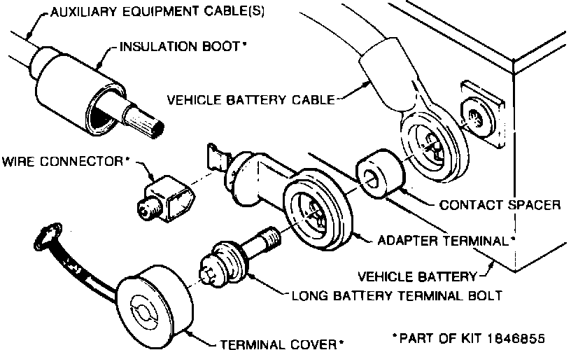 AC-Delco Side Terminal Adaptor Package 1846855, when combined with the longer battery bolt and spacer will provide the simple, tight, corrosion resistant connection illustrated. Parts can also be purchased at car dealerships.