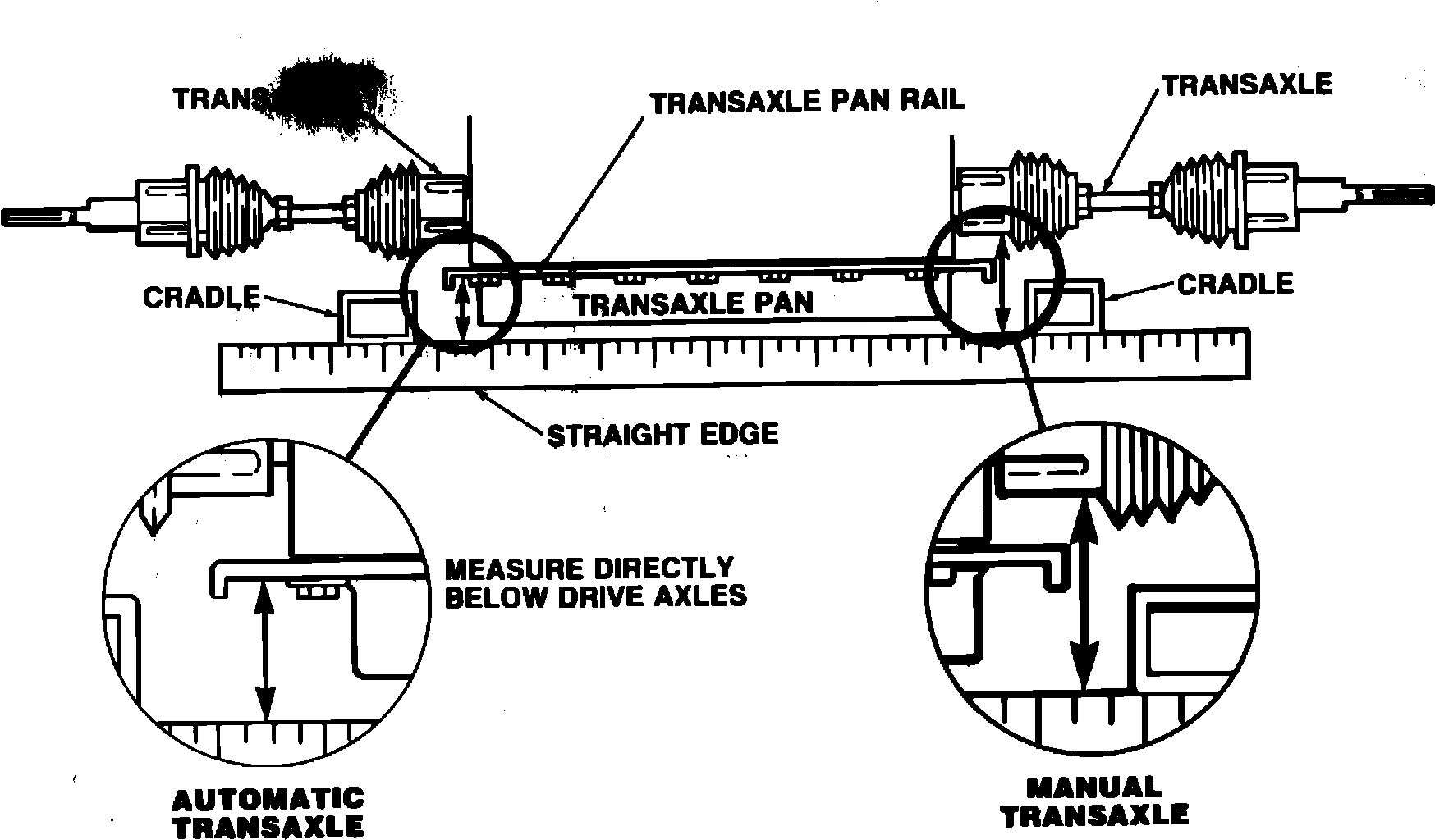 Automatic Transaxle - Differences in drive axle angles will be indicated by measuring a difference in transaxle left and right pan rail height (see Figure 1).