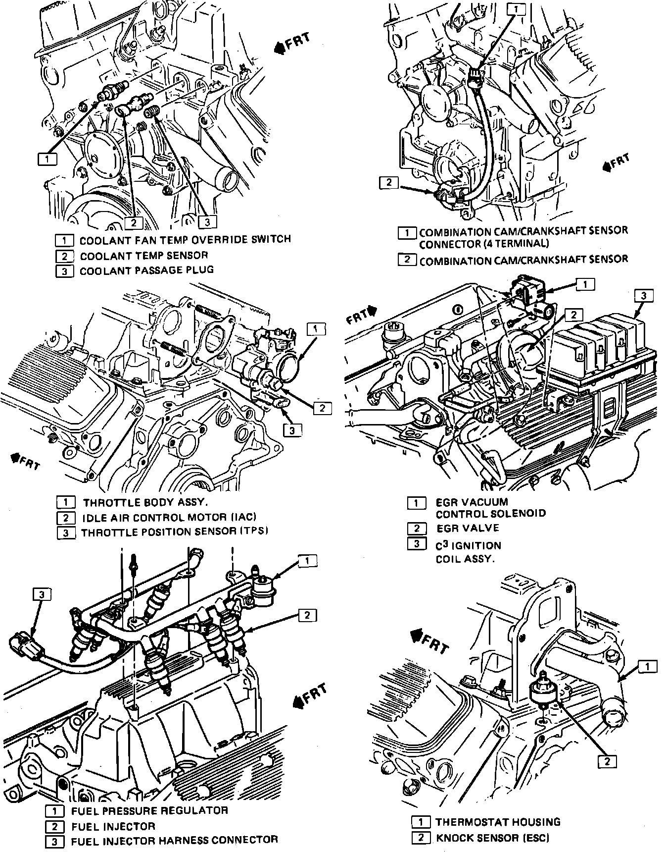 Fig. 48 Emission Component Location. 1986 Calais W/V6-183/3.0L, PFI: