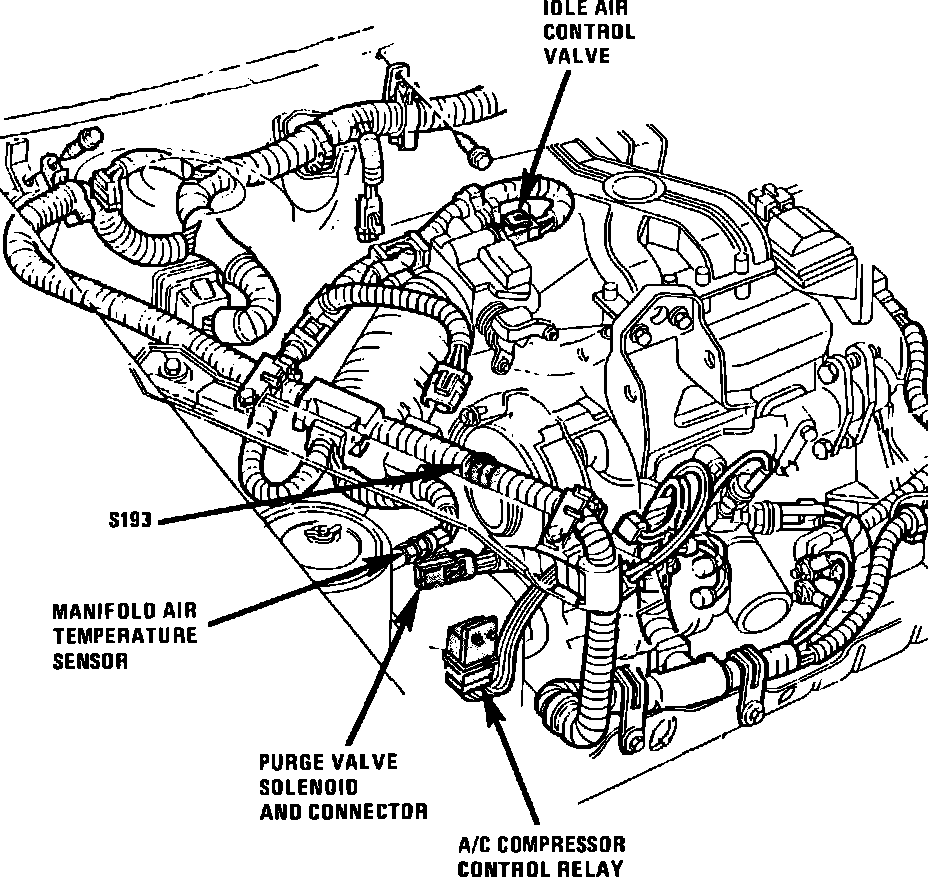 The A/C Compressor Control Relay is located on the front of engine compartment, on RH radiator bracket.