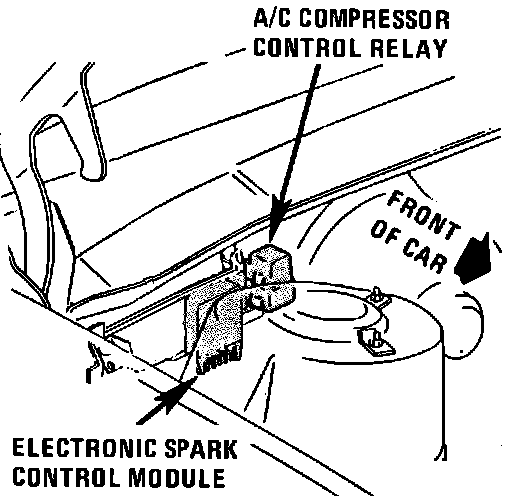 The Electronic Spark Control Module is located on RH front of dash on bracket.