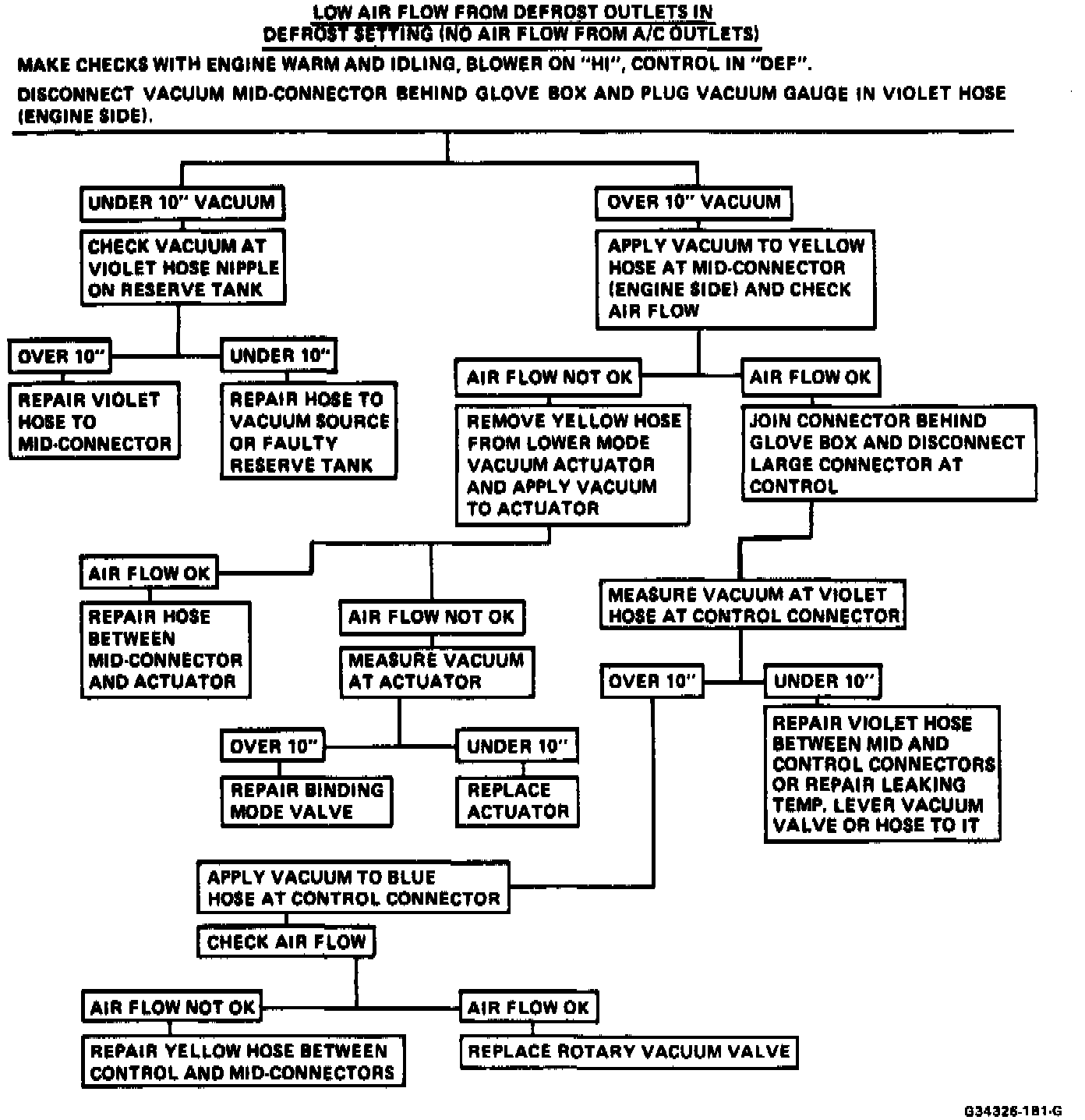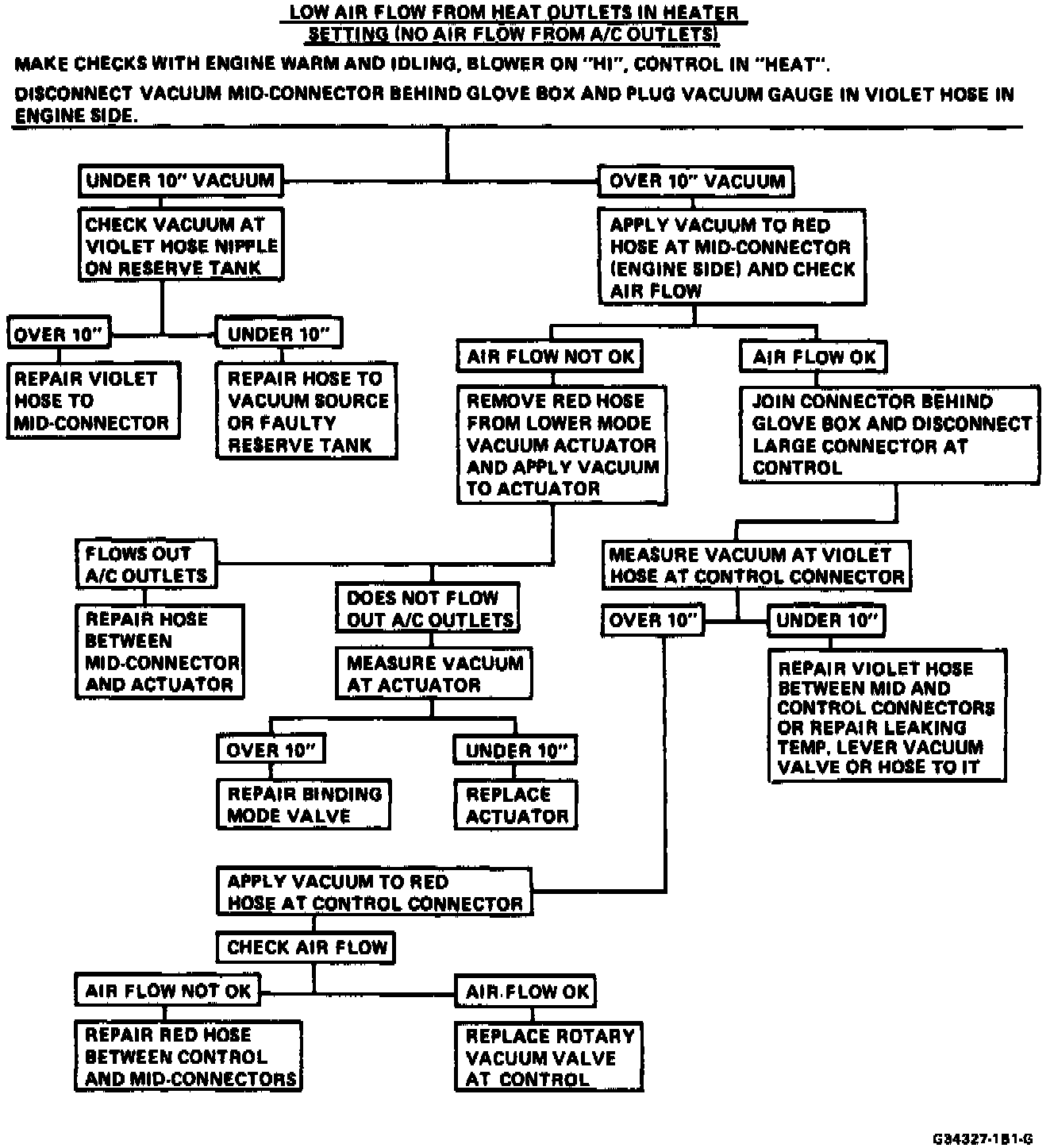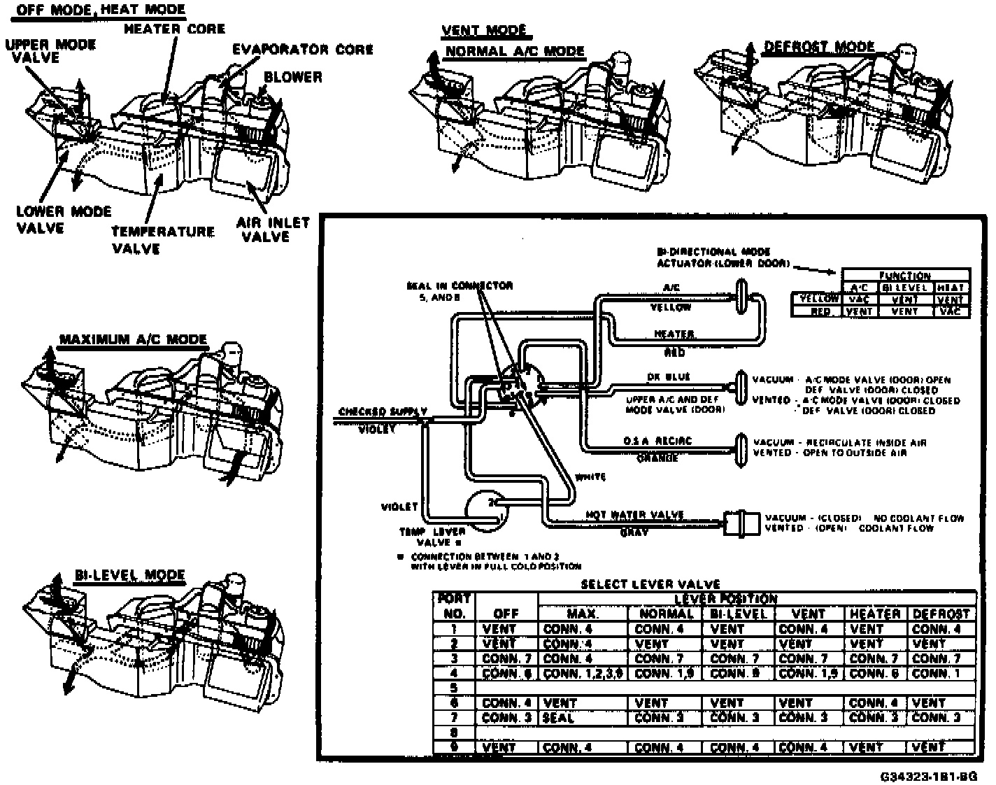 Refer to the following charts for A/C System vacuum circuit diagnosis. Additional vacuum schematics can be found under Air Door Actuator. Air DoorVacuum Circuit and Operating Chart: