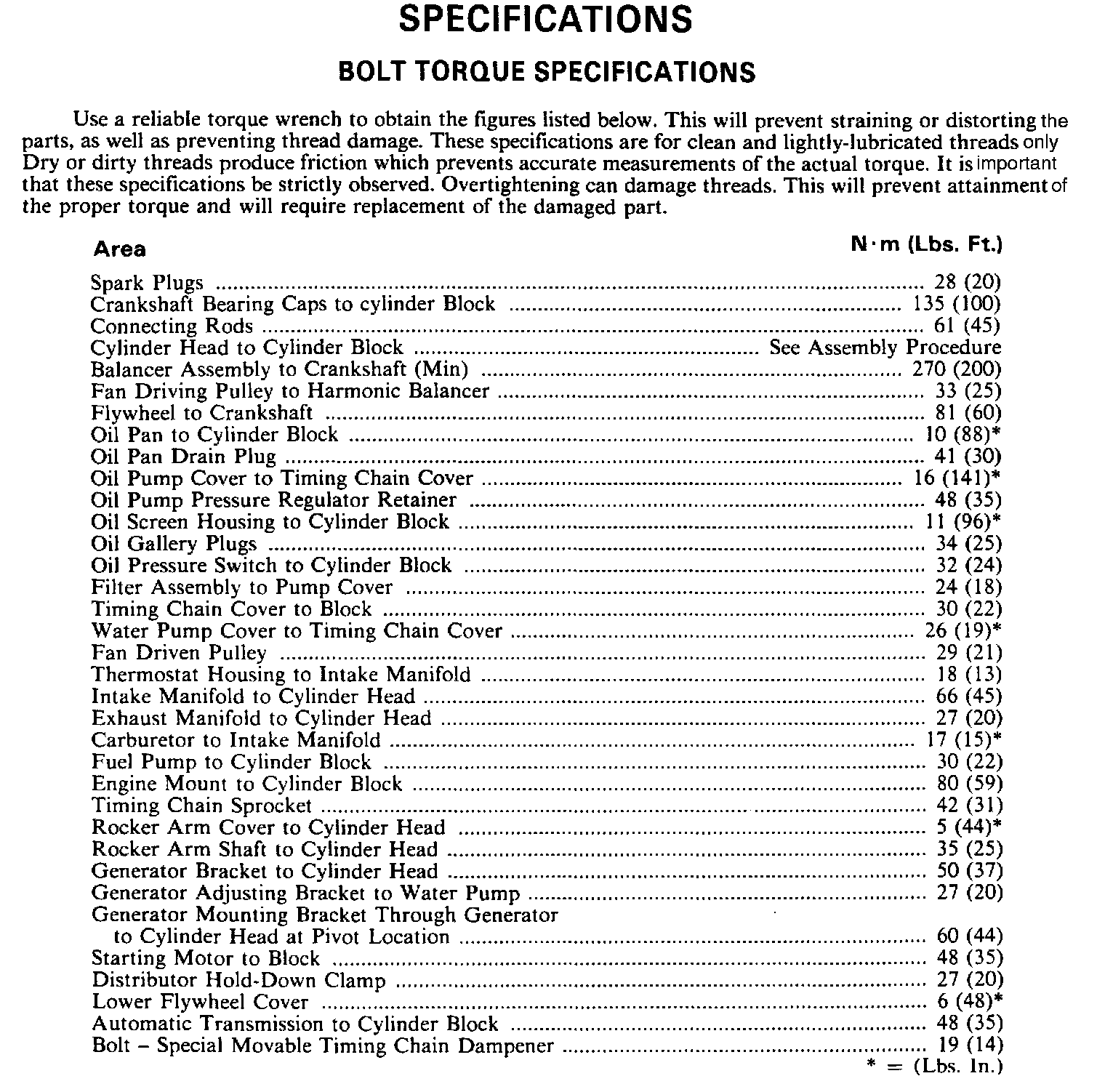 Torque Specifications: