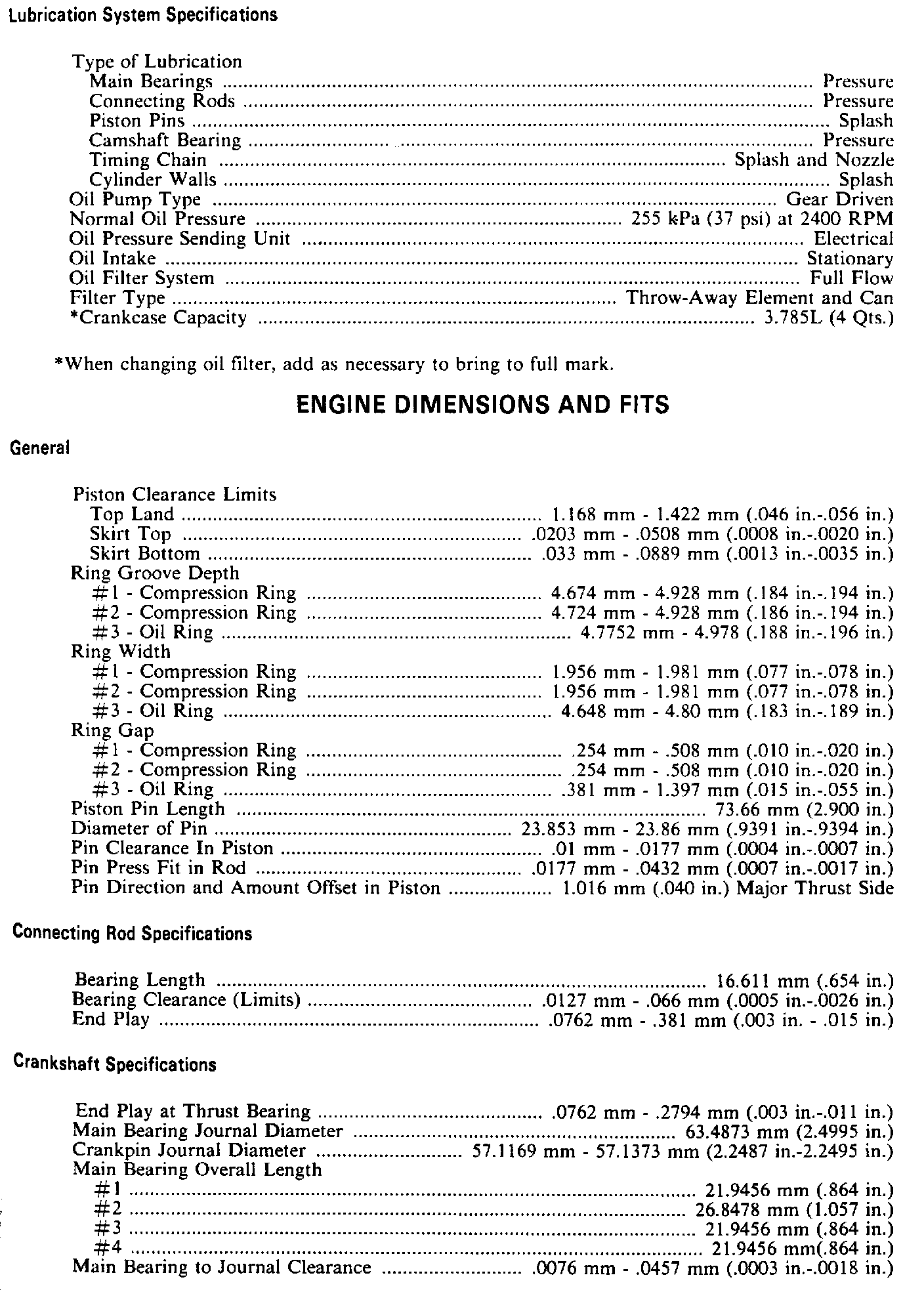 Engine Specifications: