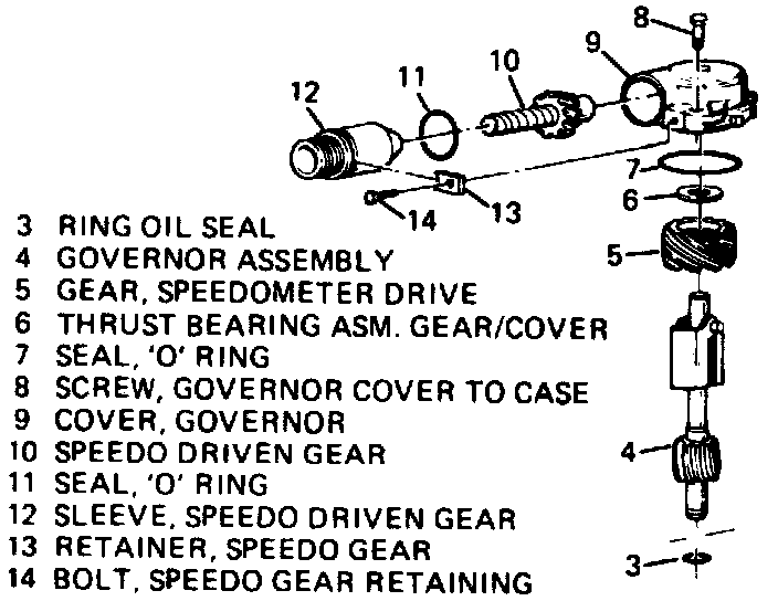 6. Remove speedometer drive gear thrust washer and gear, then the governor assembly.