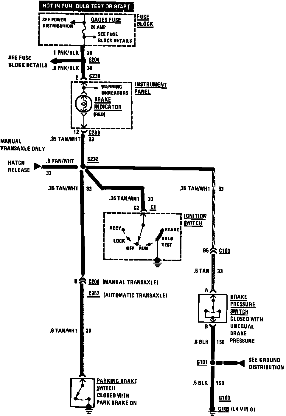 Brake Warning System Wiring Circuit: