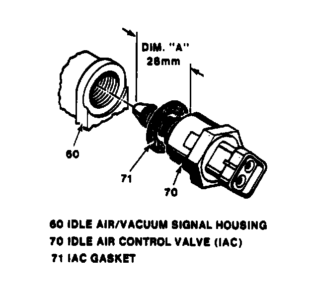- Distance from gasket mounting surface of IAC valve assembly (70) to tip of pintle, Dimension "A" in Figure.