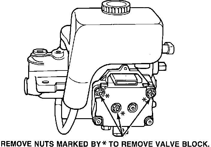 3. Remove the valve block from the booster/master cylinder. Note the location of the four o-ring seals.