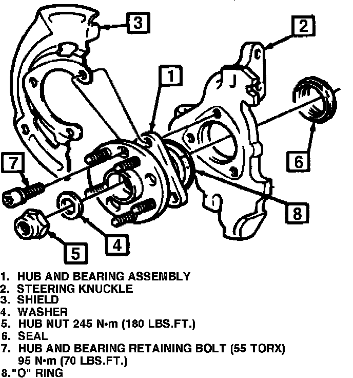 10. Install hub and bearing assembly over drive axle and torque bolts to 70 ft. lbs.