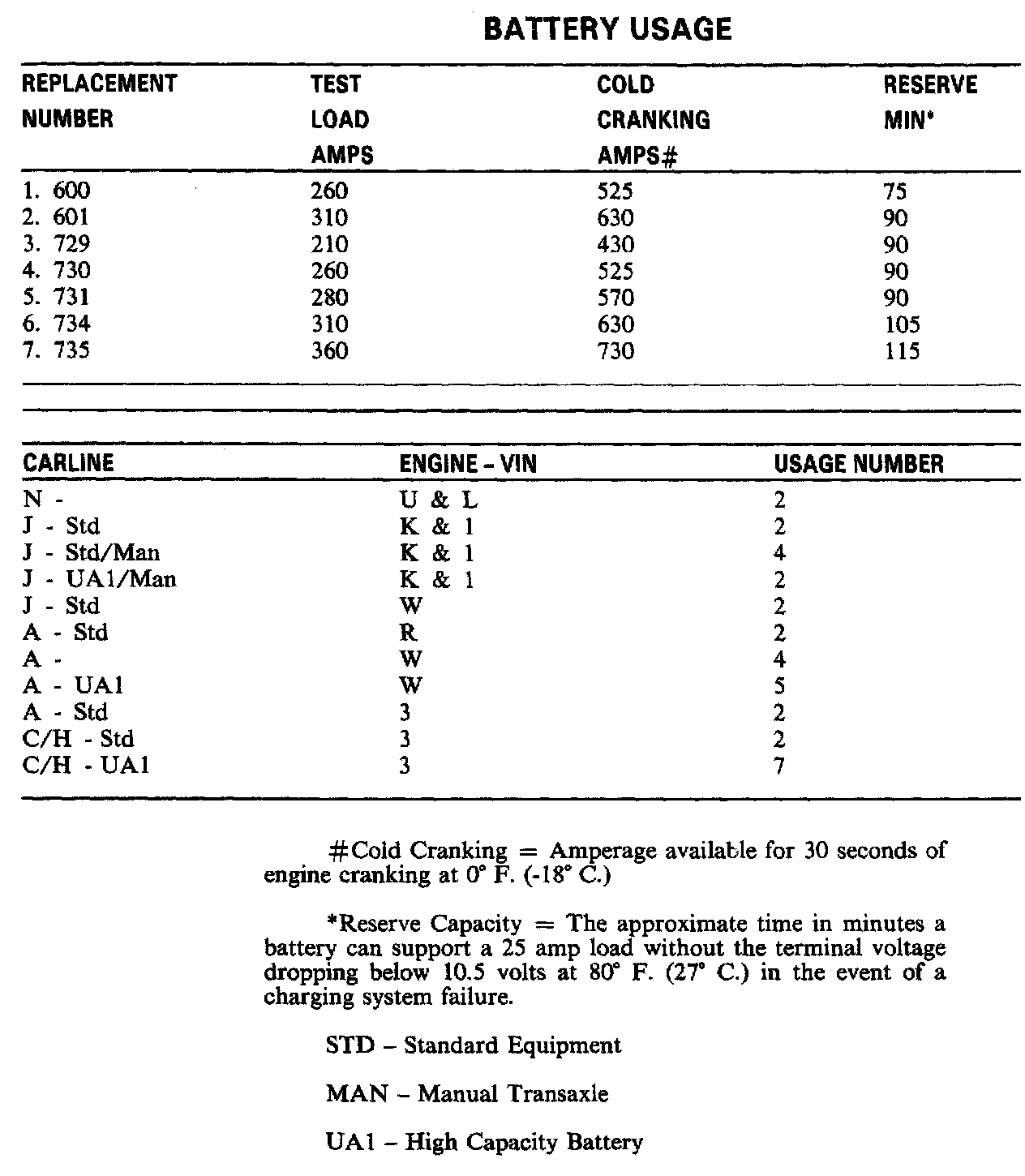 Starting and Charging: Specifications