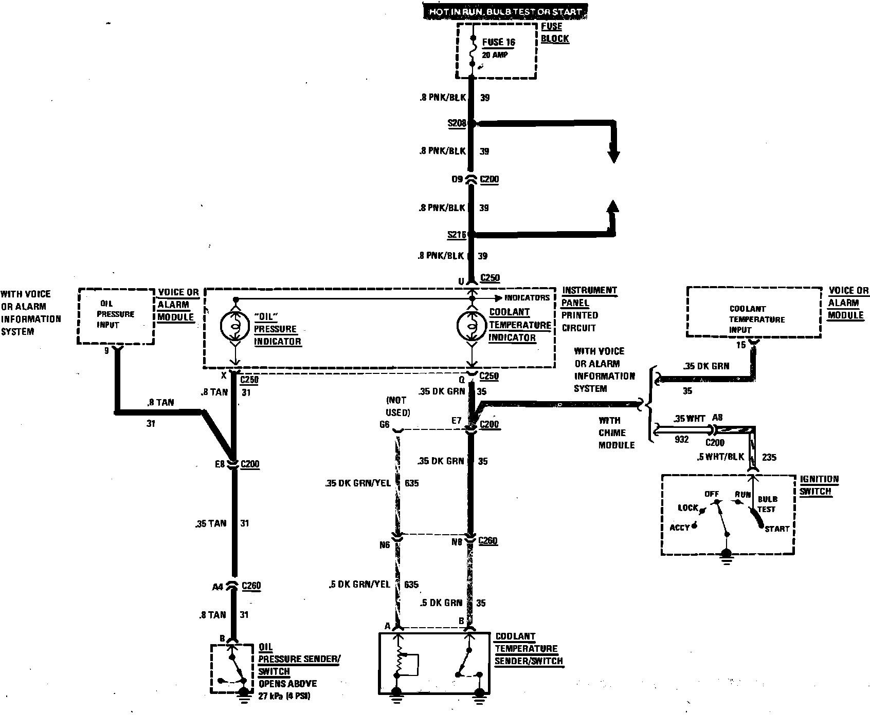 Instrument Panel Coolant Temperature & Oil Pressure Indicator Wiring Circuit Less Gauge Package: