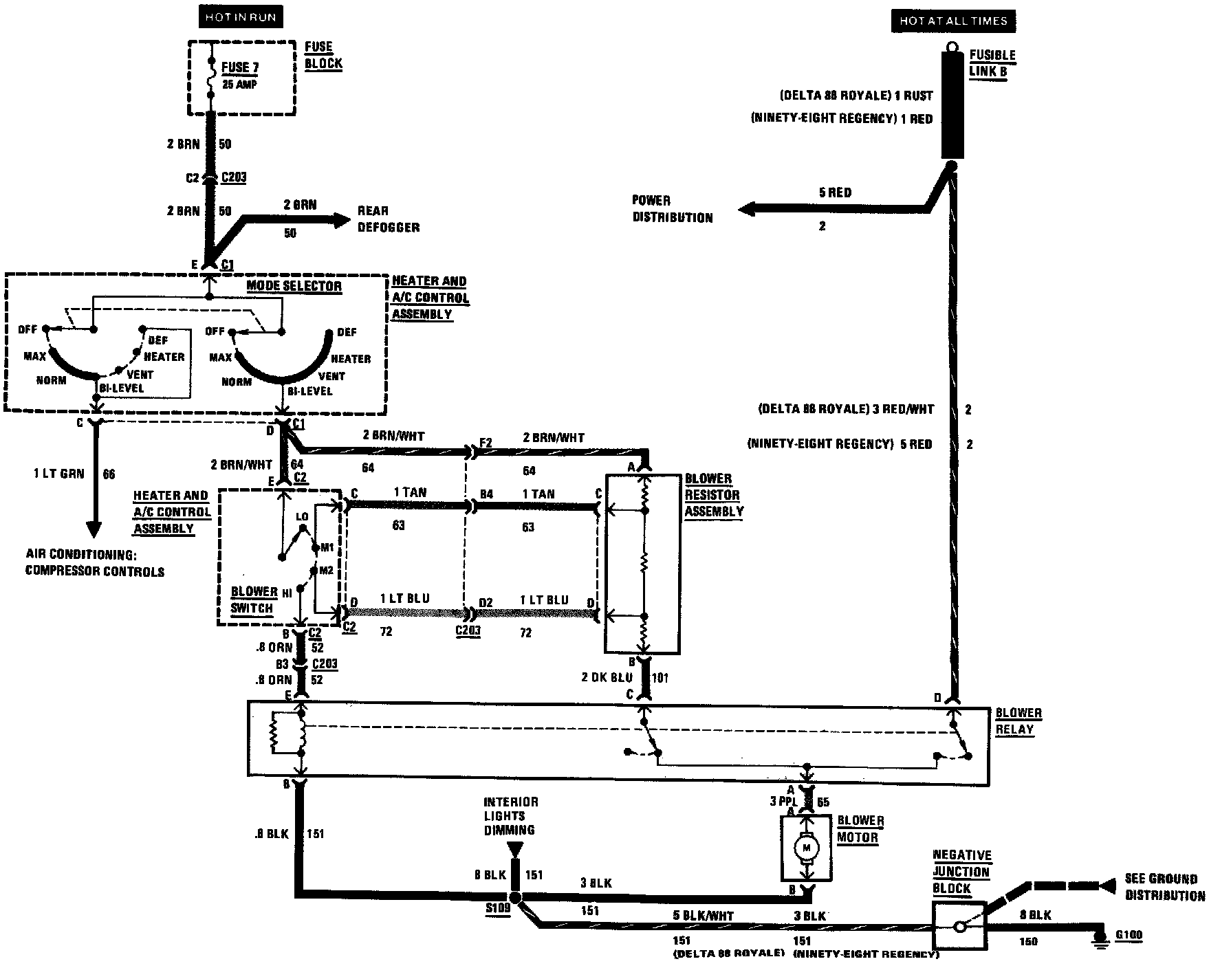 A/C Blower Controls Wiring Diagram Without Climate Control: