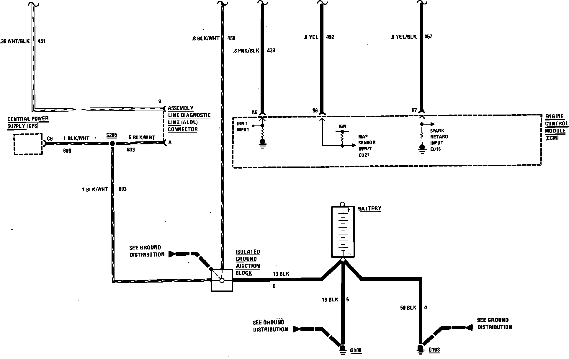 Fuel Injection Wiring Circuit (Service Engine Soon/Mass Air Flow & Electronic Spark Control Sensor, Part 2 Of 2):