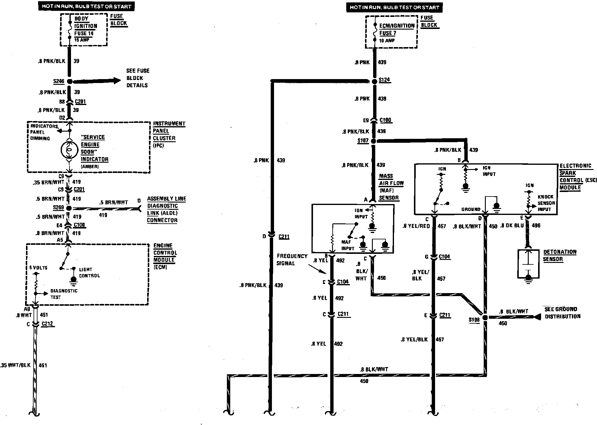 Fuel Injection Wiring Circuit (Service Engine Soon/Mass Air Flow & Electronic Spark Control Sensor, Part 1 Of 2):