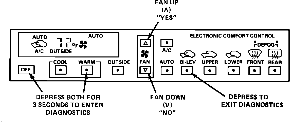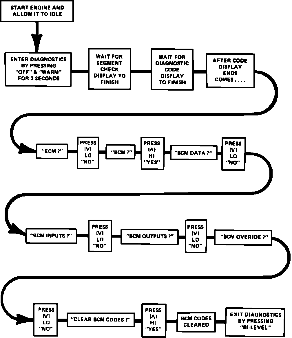 If an incorrect button is pressed during this procedure, press the BI-LEVEL button to exit diagnostics. Begin the procedure again by entering diagnostics as before.