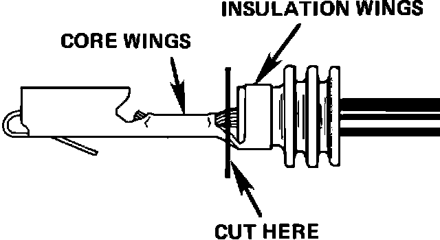 7. Cut off old terminal between insulation wings and core wings. Refer to Figure 3. Pull off old seal and remaining piece of terminal.