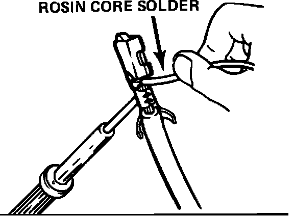 11. Using rosin core solder, solder hand crimped terminal(s) as shown in Figure 5.