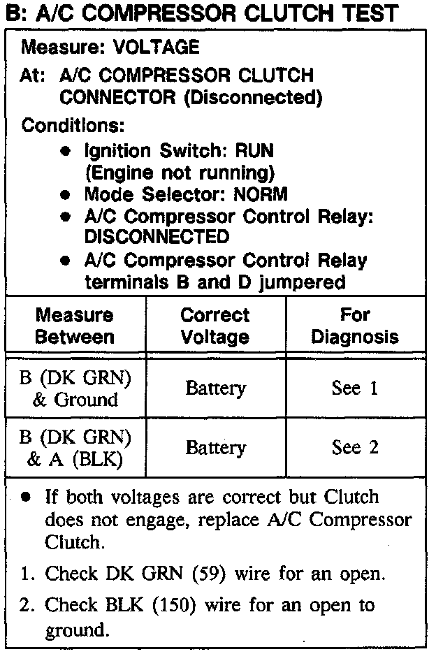 Test B: A/C Compressor Clutch Test