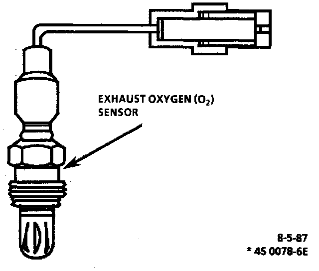 The exhaust Oxygen (02) sensor is mounted in the exhaust system where it can monitor the oxygen content of the exhaust gas stream. The oxygen content in the exhaust reacts with the sensor to produce a voltage output. This voltage ranges from approximately 100 millivolts to 1000 millivolts and must be measured with a high impedance digital volt/ohm meter.