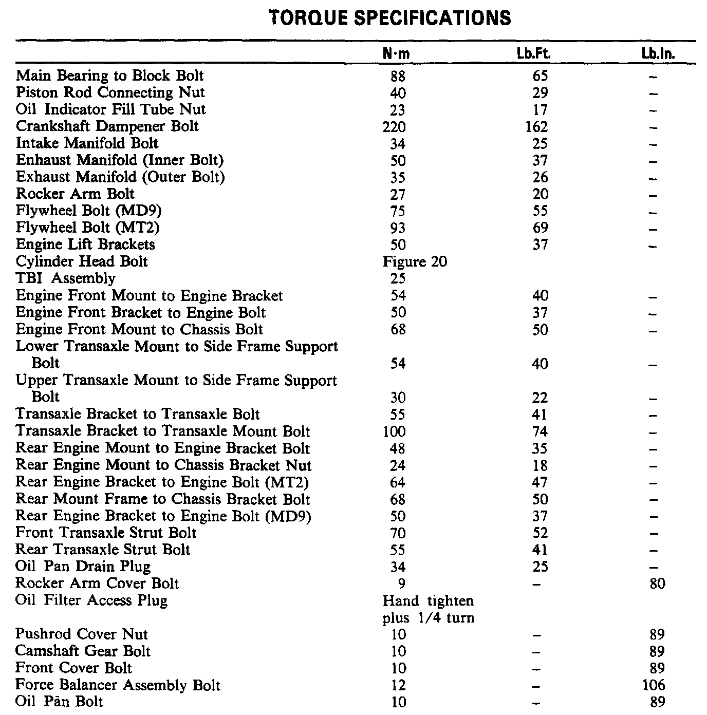 Torque Specifications: