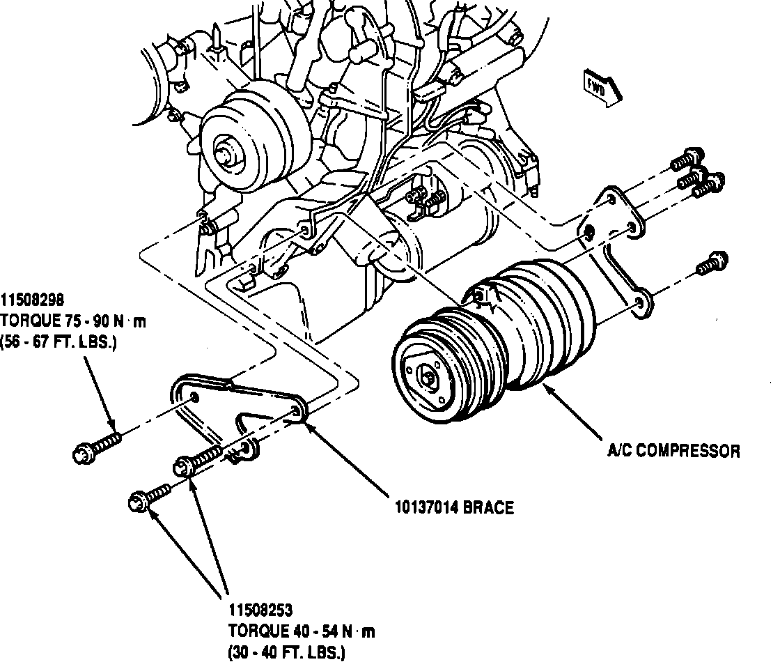 IMPORTANT: If the vehicle is already equipped with the new compressor mounting brace, omit steps 2 thru 5 and go to step 6.