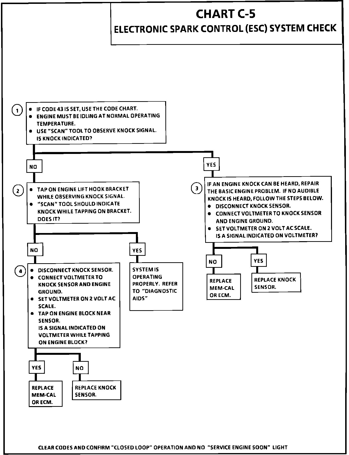 4. This test determines if the knock sensor is faulty or if the ESC portion of the Mem-Cal is faulty. If it is determined that the Mem-Cal is faulty, be sure that it is properly installed and latched into place. If not properly installed, repair and retest.