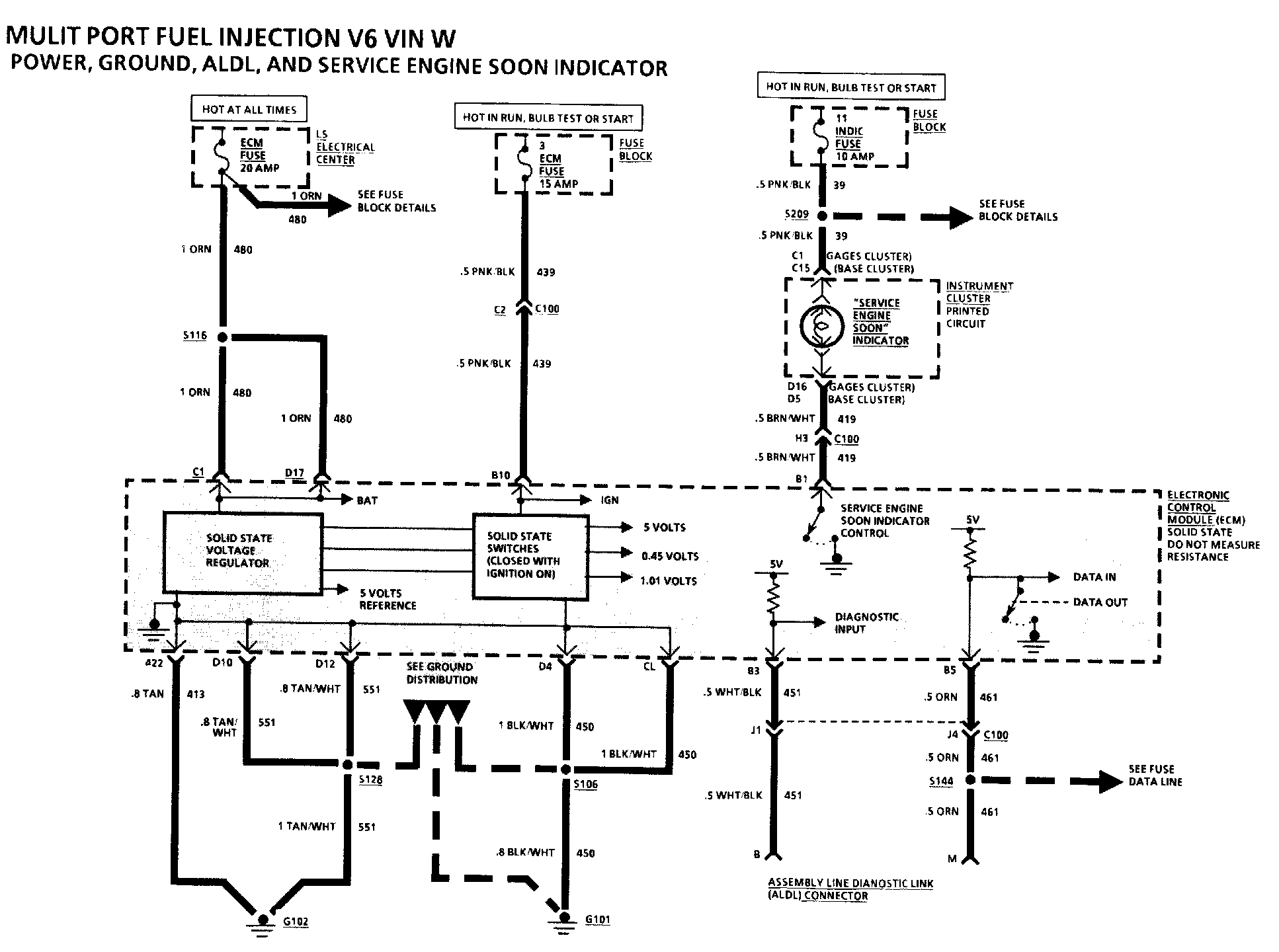 MULTIPORT FUEL INJECTIONPower, Ground, ALDL, and Service Engine Soon Indicator: