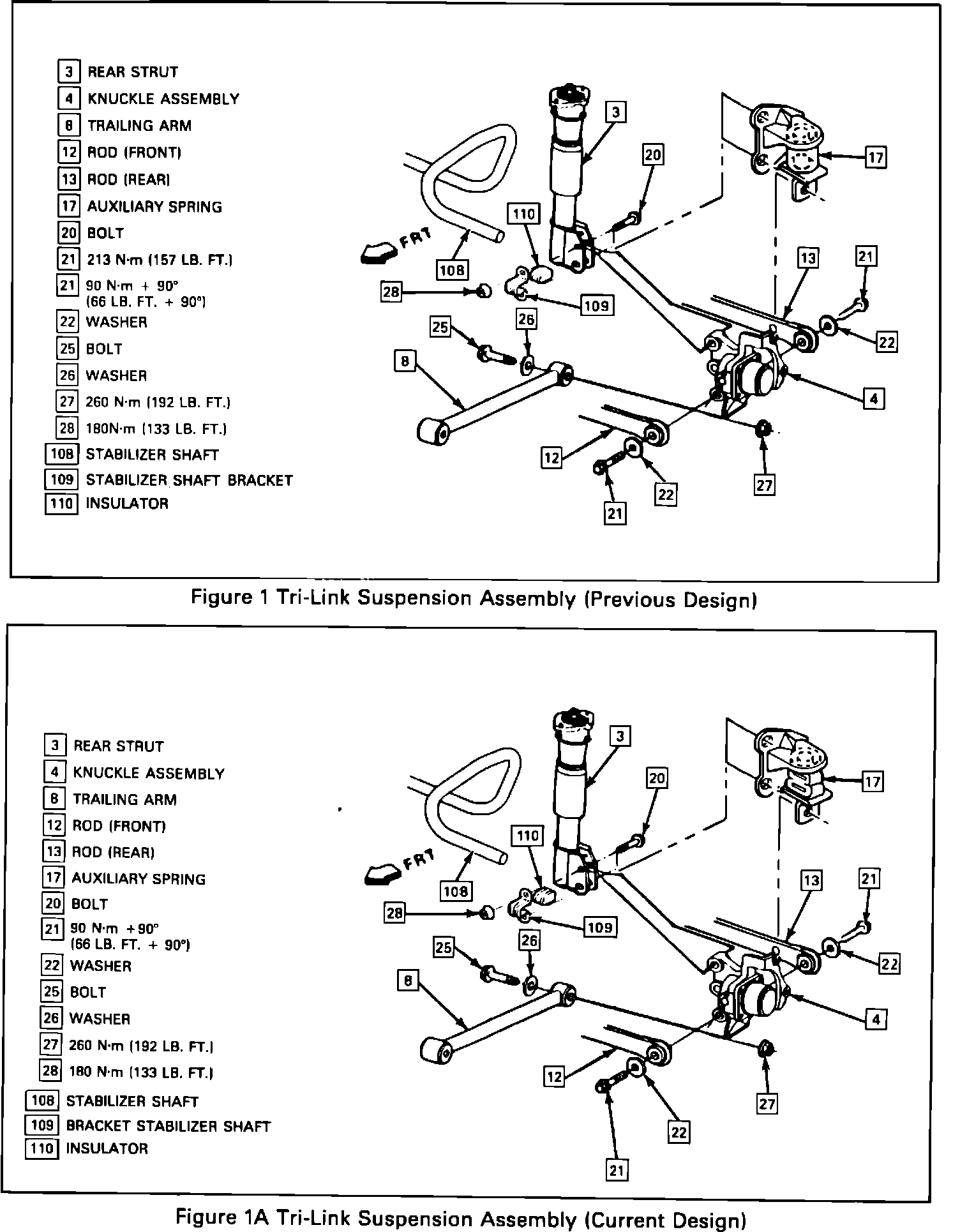 2. Strut/upper auxiliary spring bracket/stabilizer shaft bracket to knuckle.