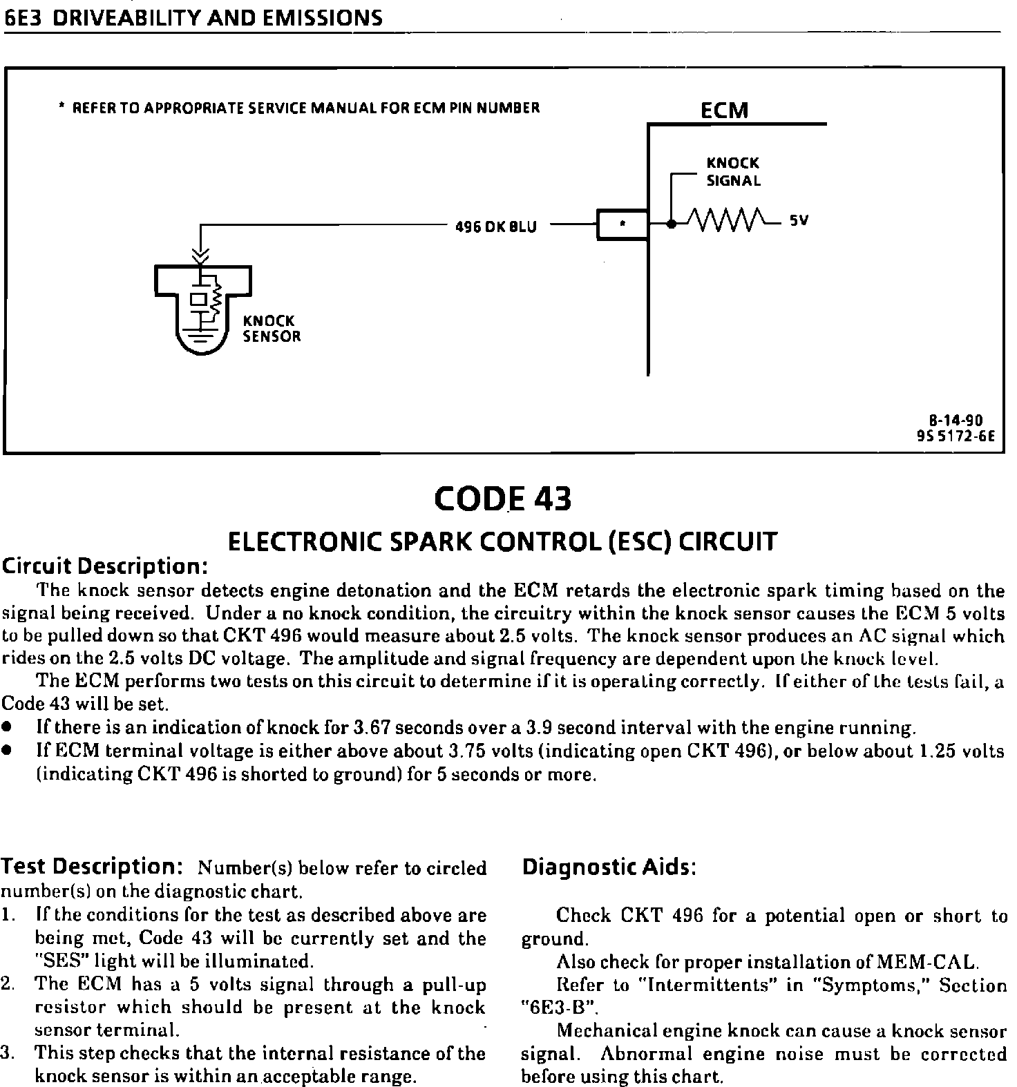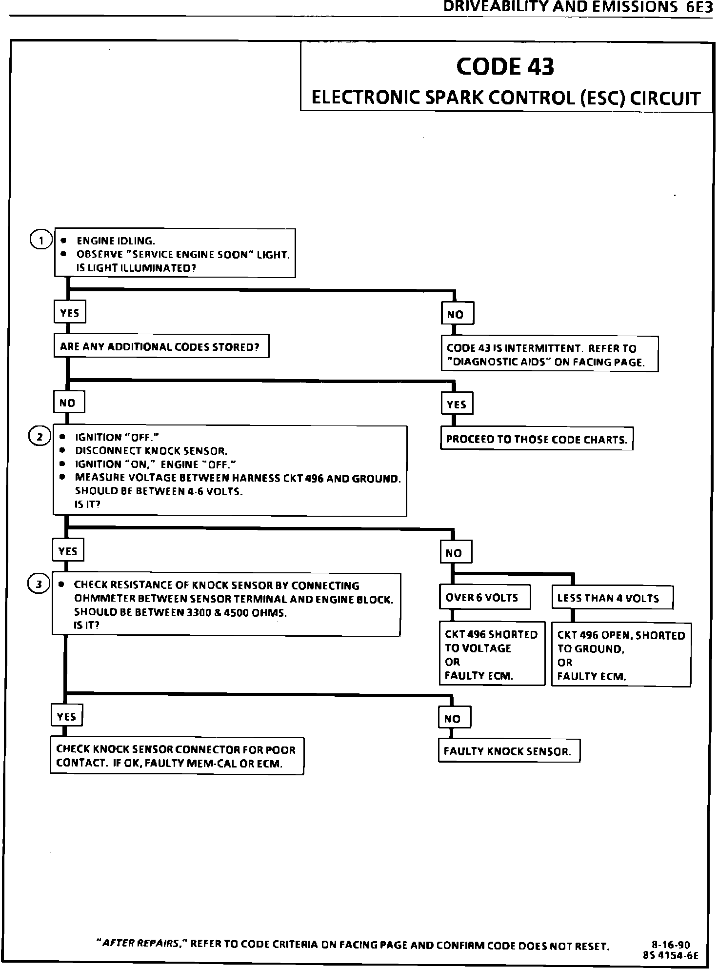 This bulletin replaces current Code 43 Charts and Facing Pages in the Service Manual Section 6E3 "Driveability And Emissions" for the vehicle applications listed.