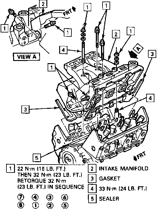 c. Torque intake manifold nuts and bolts to specification, Fig. 3.