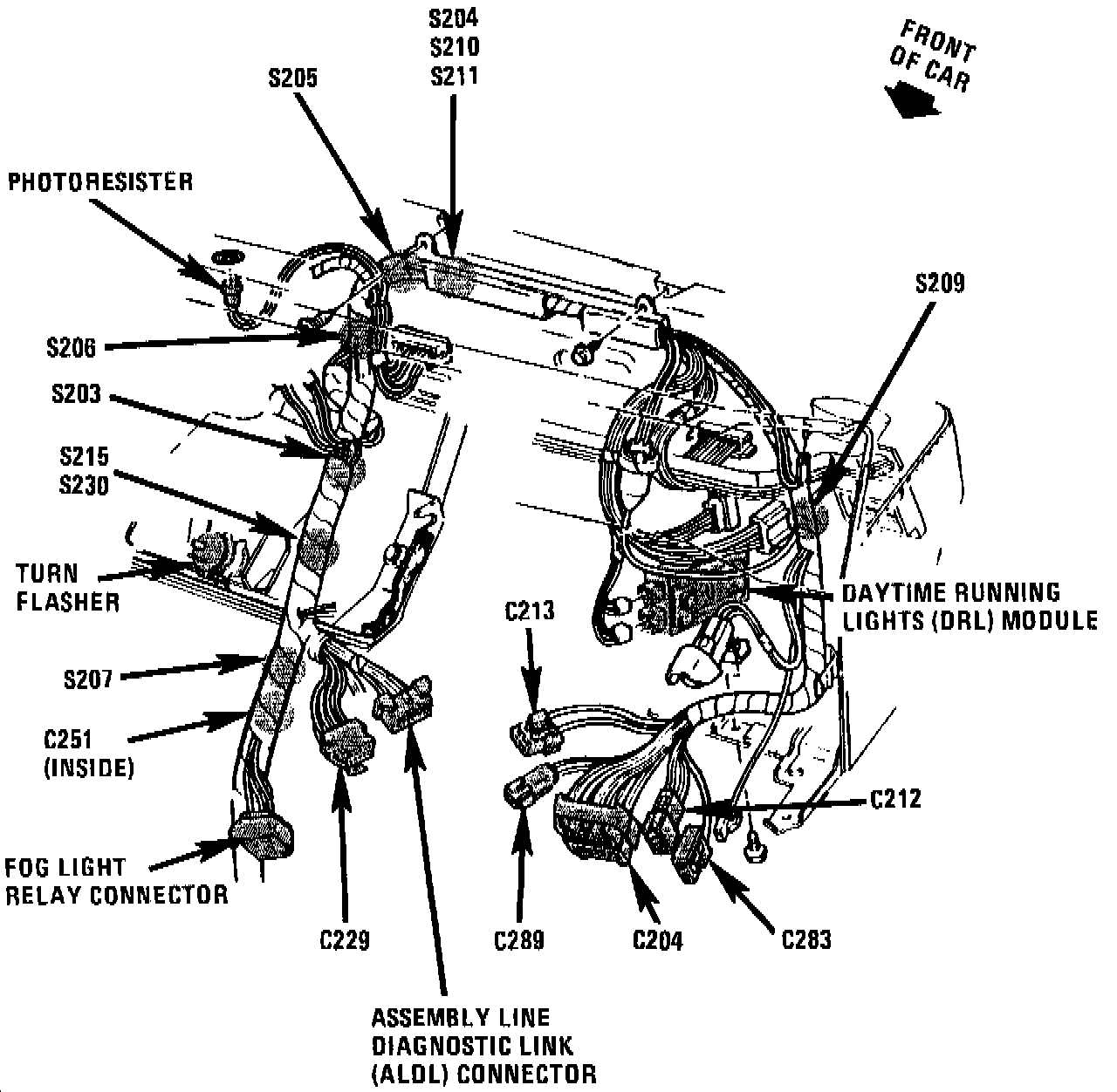 The Assembly Line Diagnostic Link (ALDL) is located below LH side of I/P, near steering column.