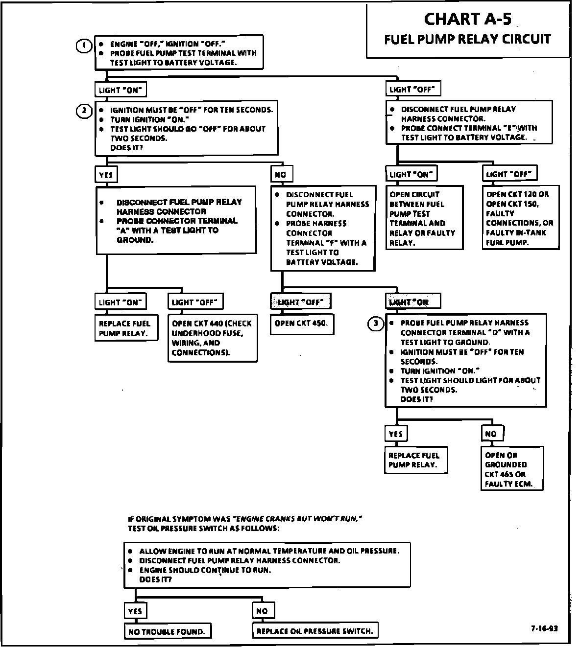 This bulletin updates Section 6E2 for the 1989-92 Cutlass Ciera Service Manual. The updated A-5 Chart represents a change in diagnosing the fuel pump relay circuit.