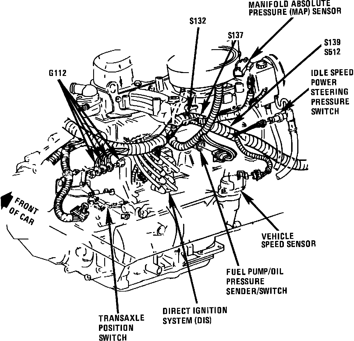 The Vehicle Speed Sensor (VSS) is located in the rear of engine compartment on transaxle.