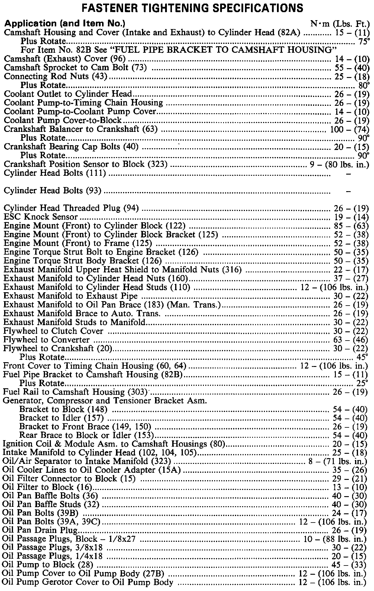 Torque Specifications: