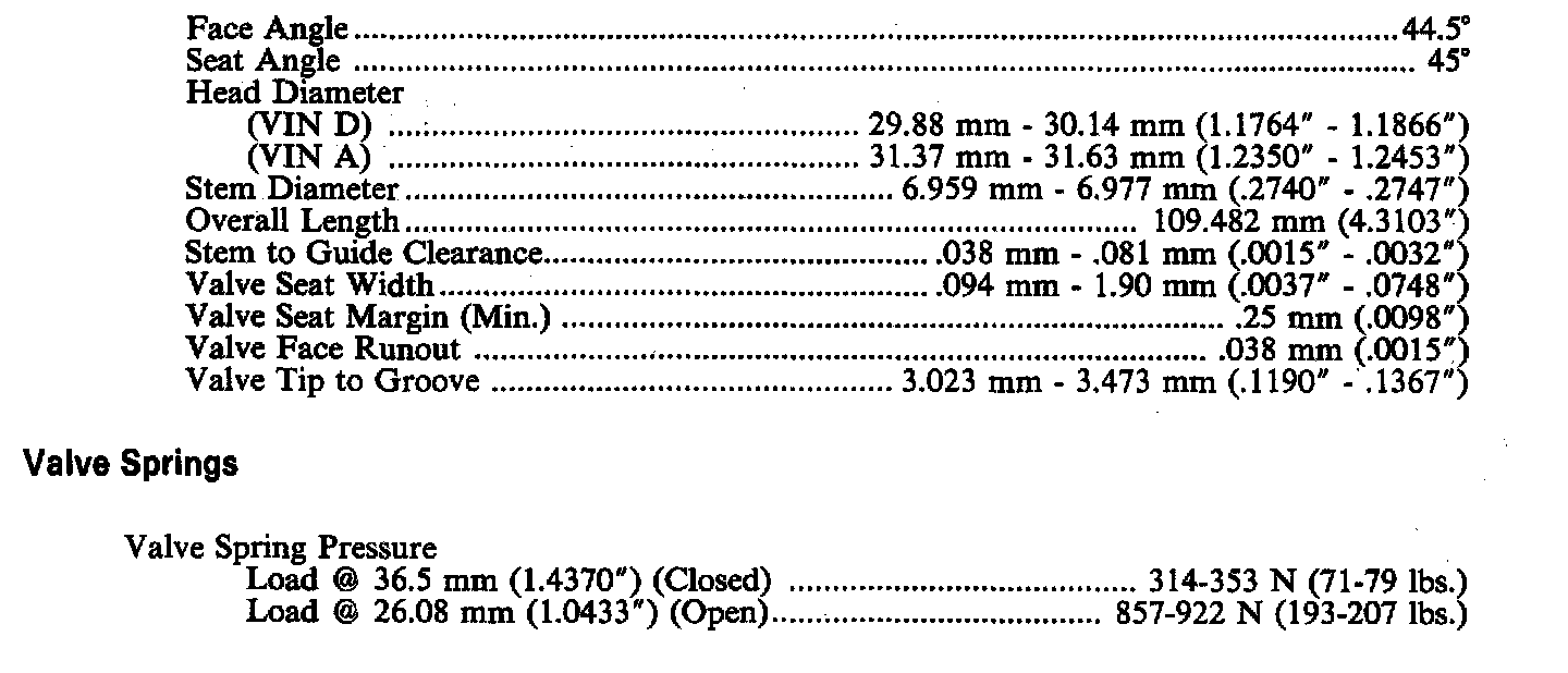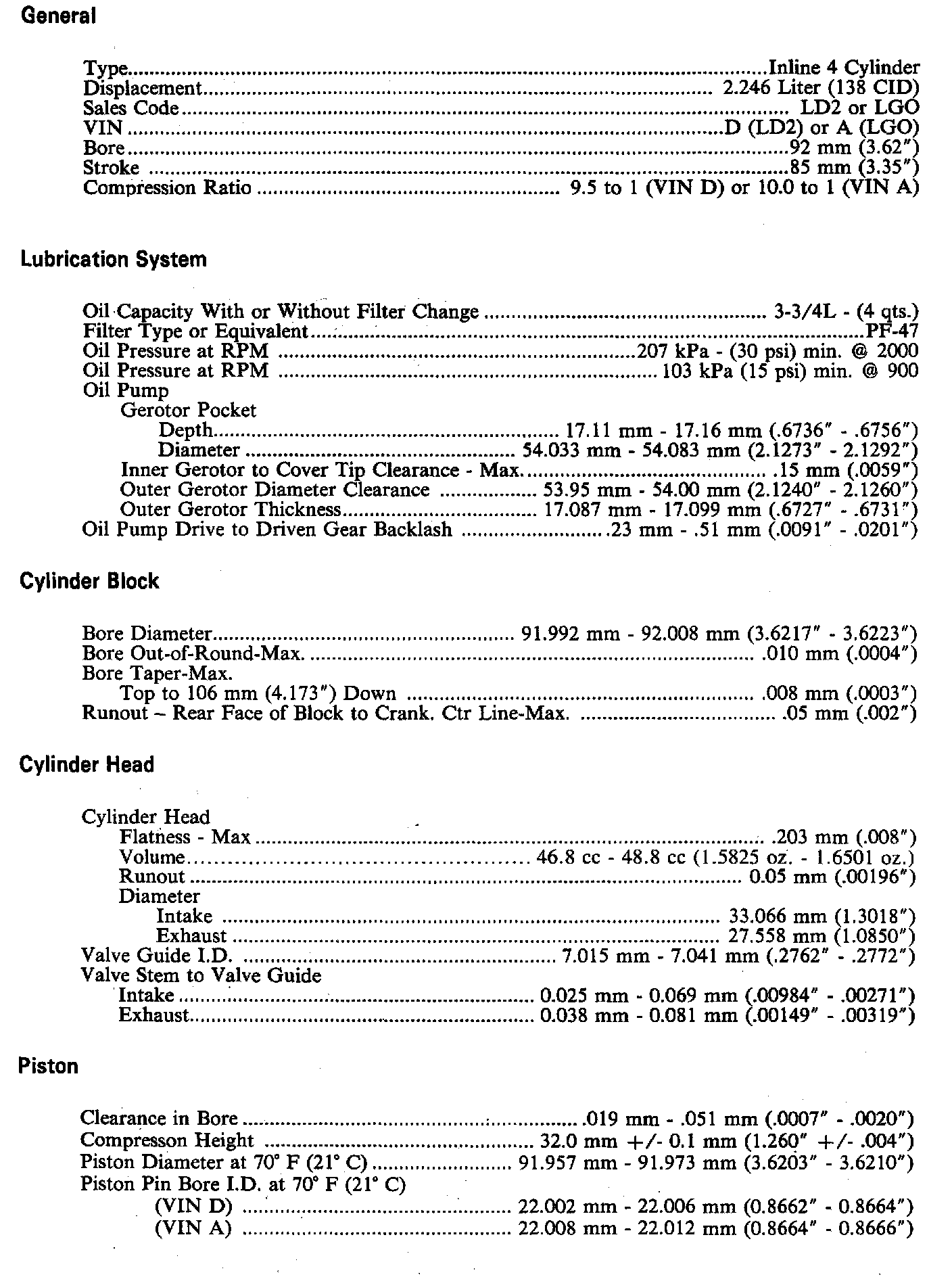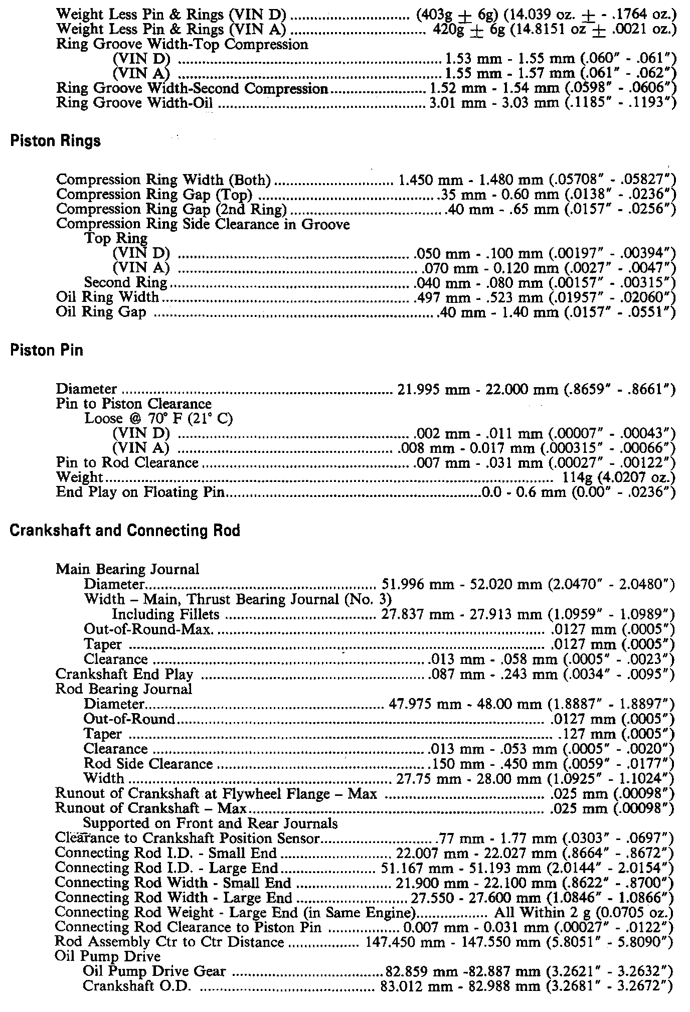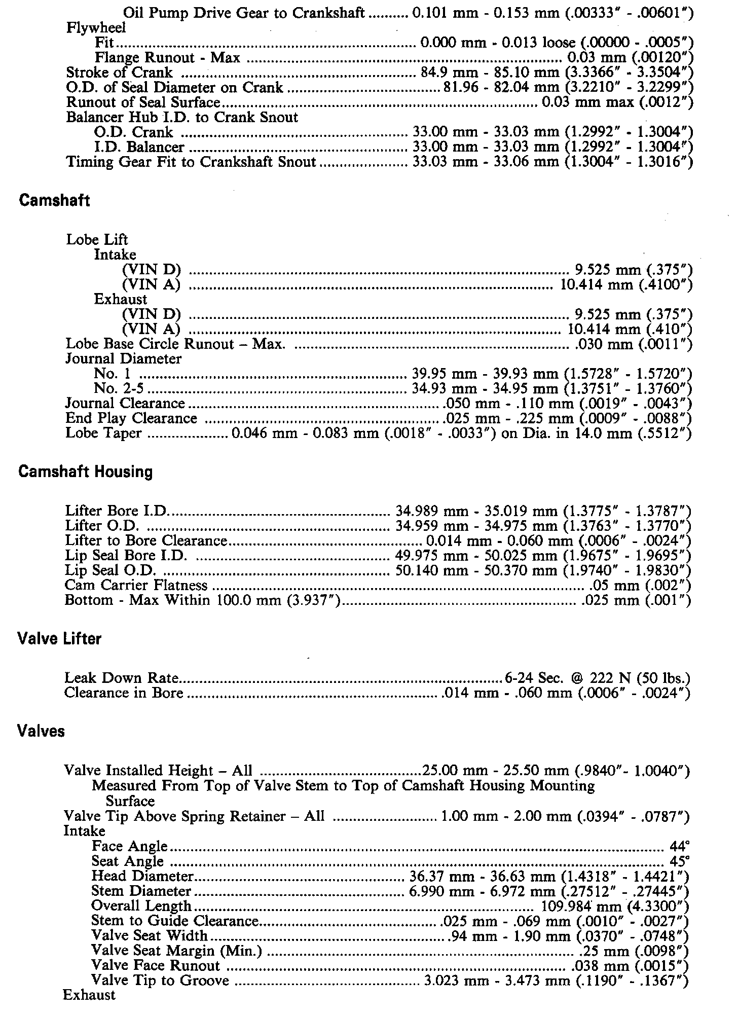 Engine Specifications: