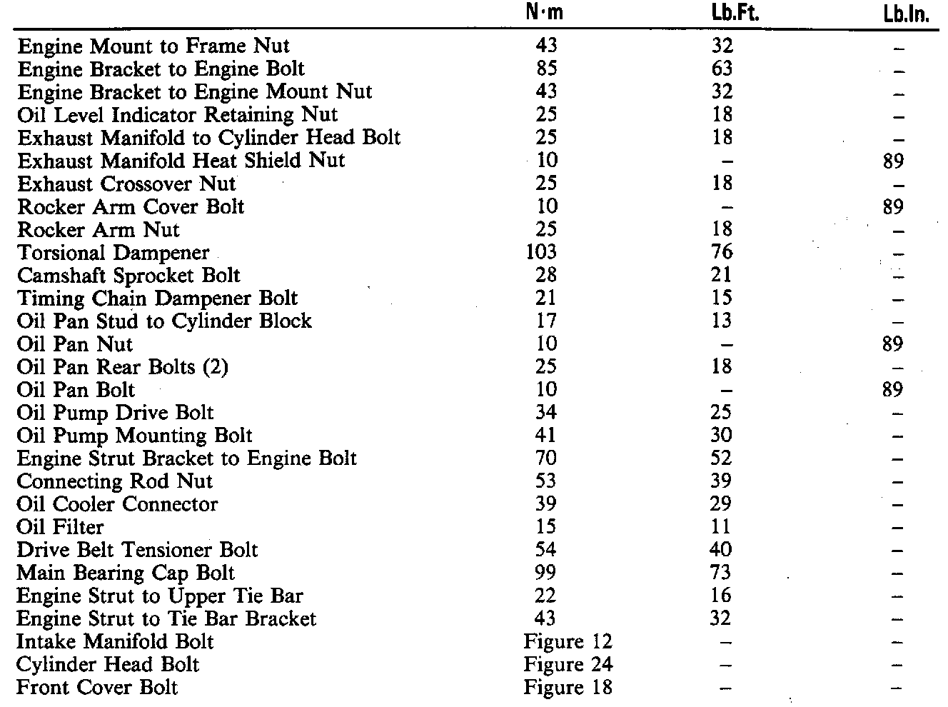 Torque Specifications: