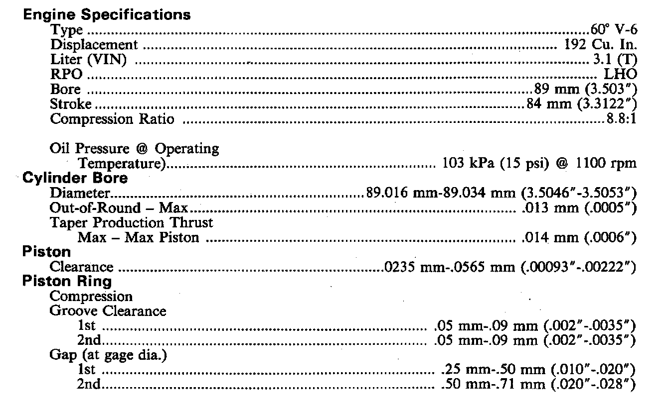 Cutlass V6-189 3.1L VIN T FI