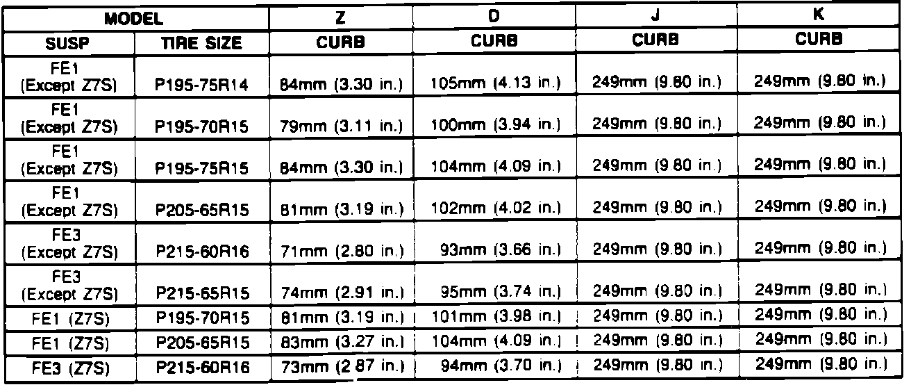 Fig. 7 Ride Height Specification Chart. 1990 Cutlass Supreme: