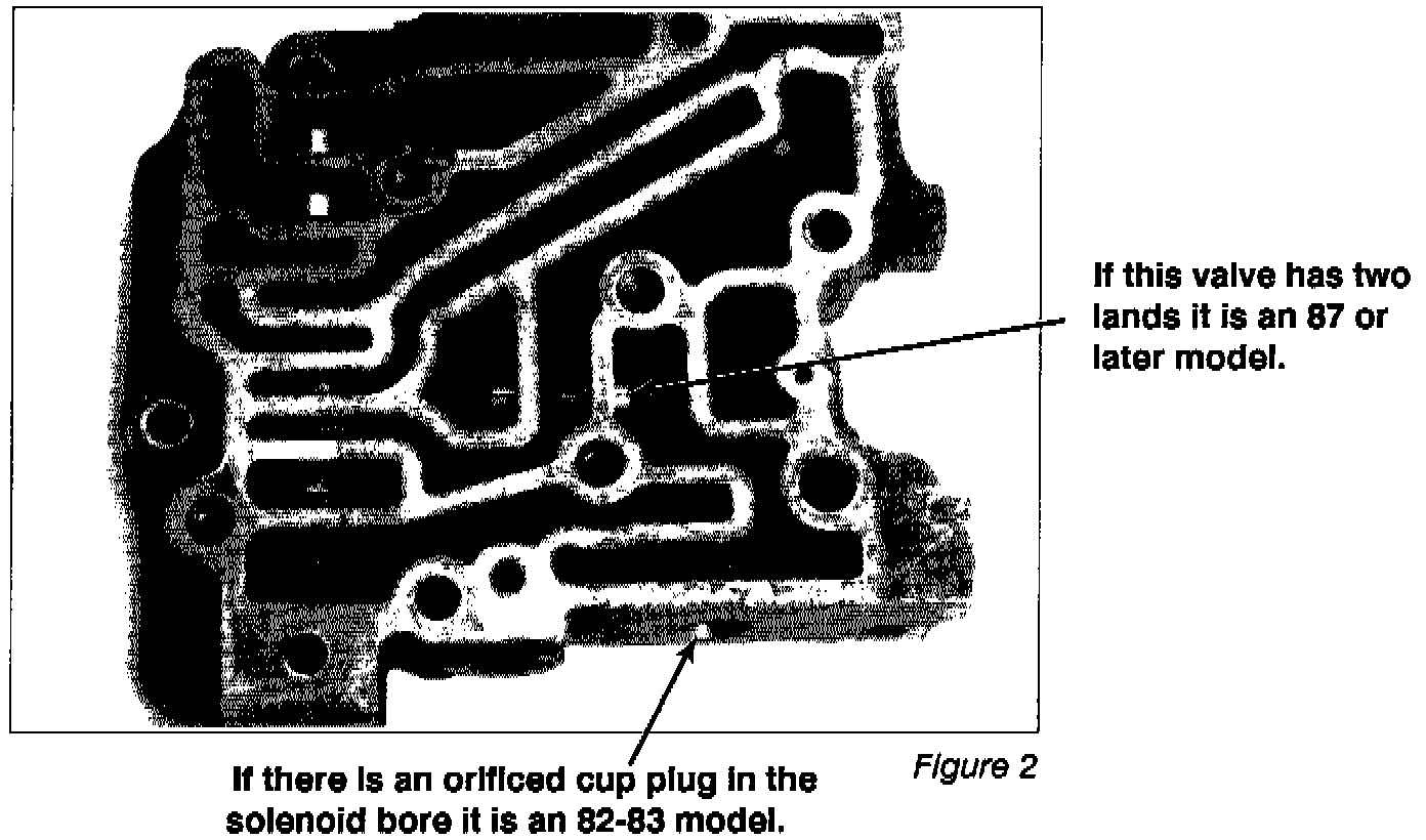 An 84-86 model will have no cup plug and it will have a three land valve. An 87 and later valve body will have a two land valve.