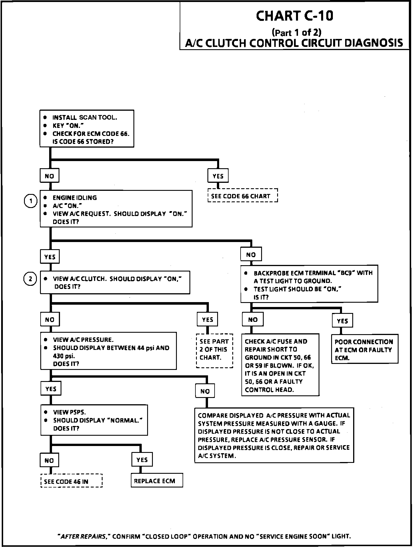 DIAGNOSTIC AIDS: If complaint is insufficient cooling, the problem may be caused by an inoperative cooling fan. See CHART C-12 for cooling fan diagnosis.