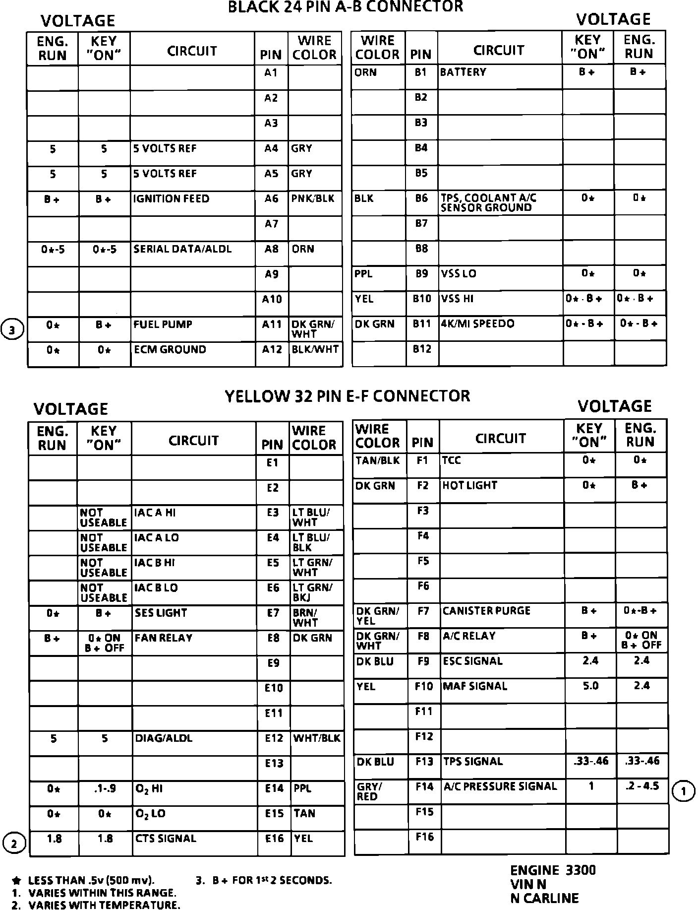 ECM Connector Terminal Identification (Part 1 Of 2):