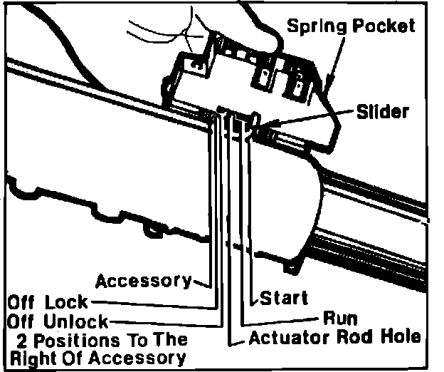 The ignition switch is mounted on top of the mast jacket inside the brake pedal support and is actuated by a rod and rack assembly.