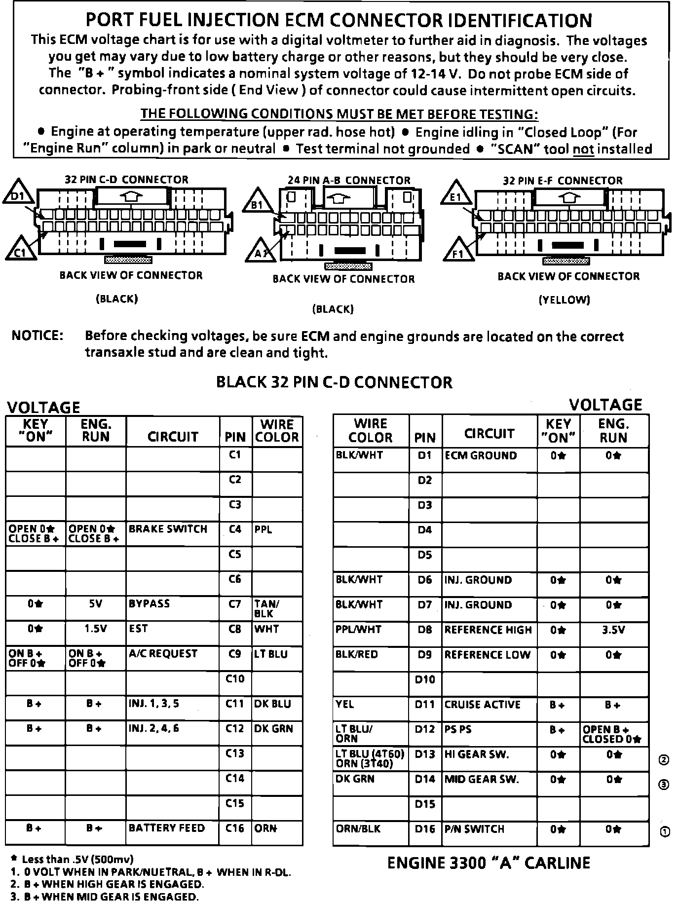 ECM Connector Terminal Identification (Part 1 Of 2):