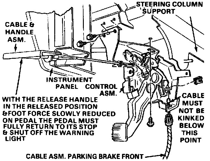 4. Tighten adjusting nut on parking brake cable until the right rear wheel can just be turned rearward with two hands but cannot be turned forward.