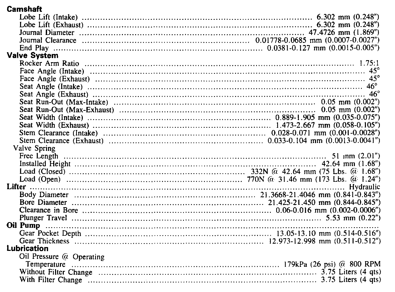 Continued Engine Specifications: