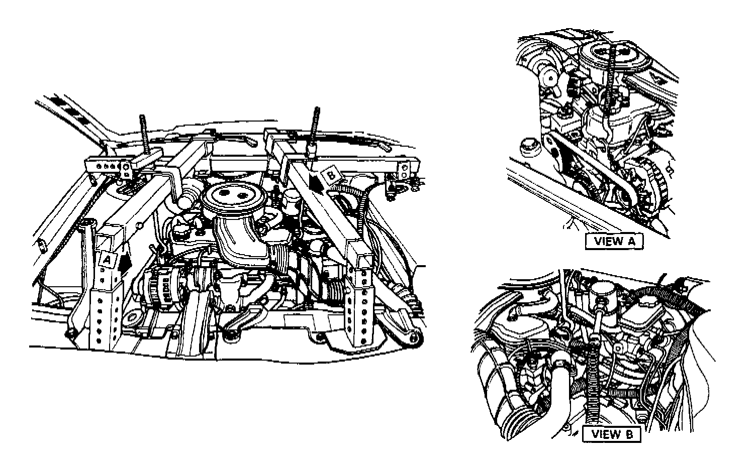 2. Install engine support fixture J-28467-A and J-36462.
