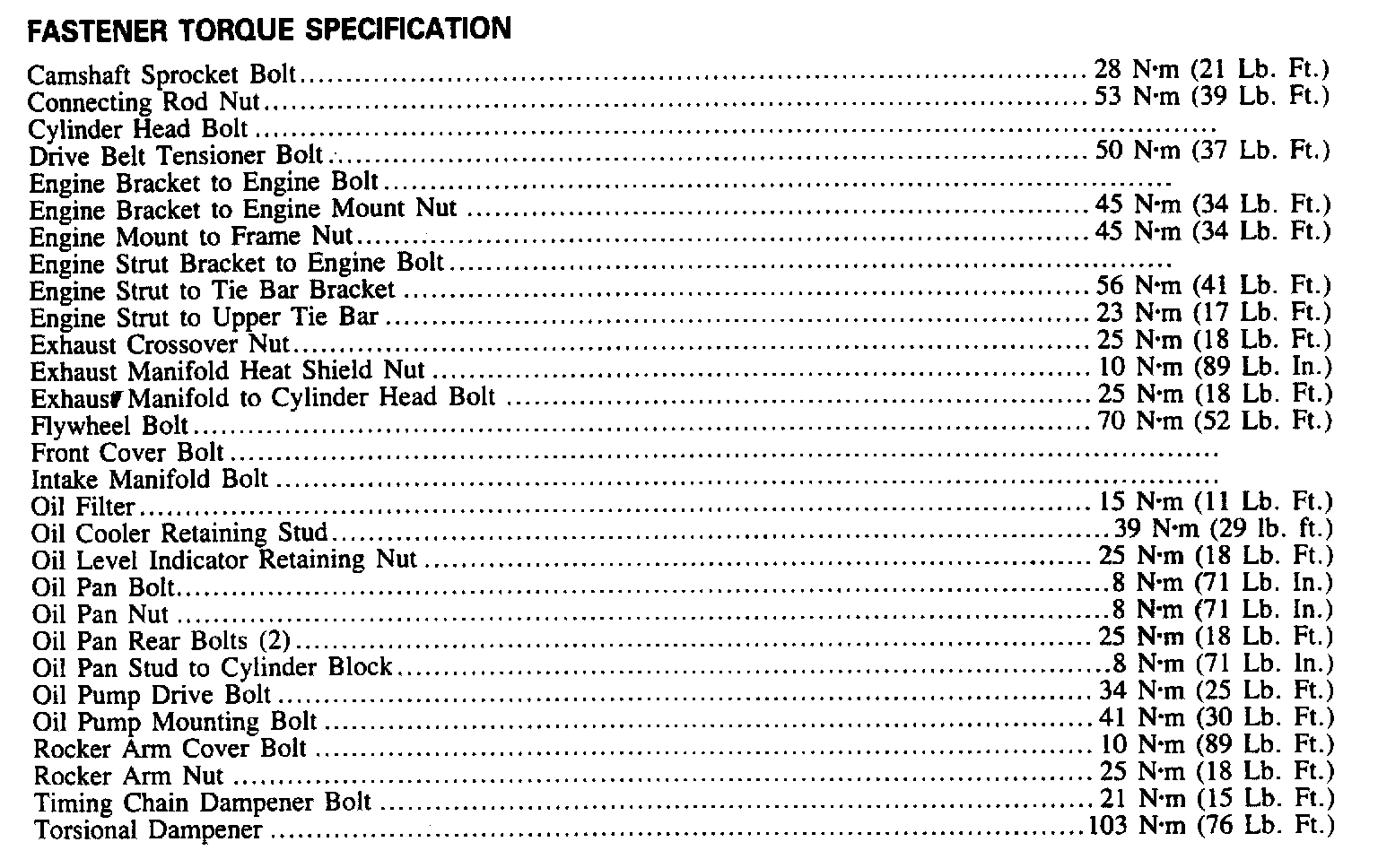 Torque Specifications: